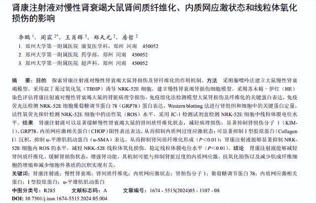 [1]李鹏.肾康注射液对慢性肾衰竭大鼠肾间质纤维化、内质网应激状态和线粒体氧化损伤的影响,现代药物与临床,2024-05-28