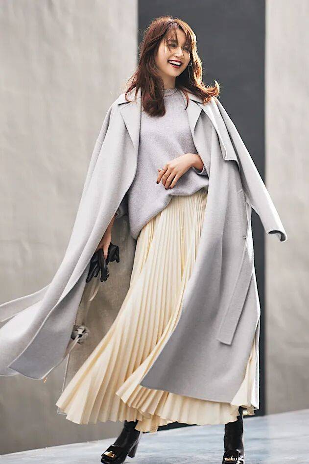 亮色内敛用:炭灰外套内搭灰粉羊绒衫,温柔不跳脱。