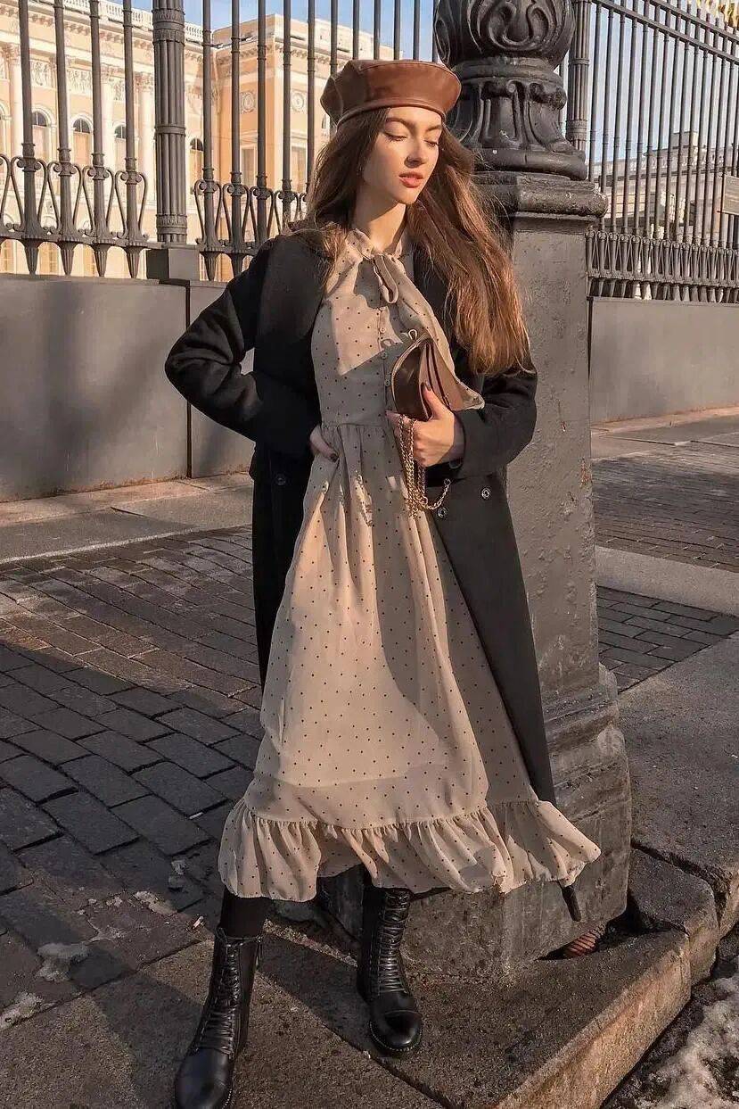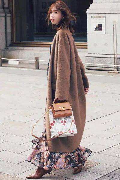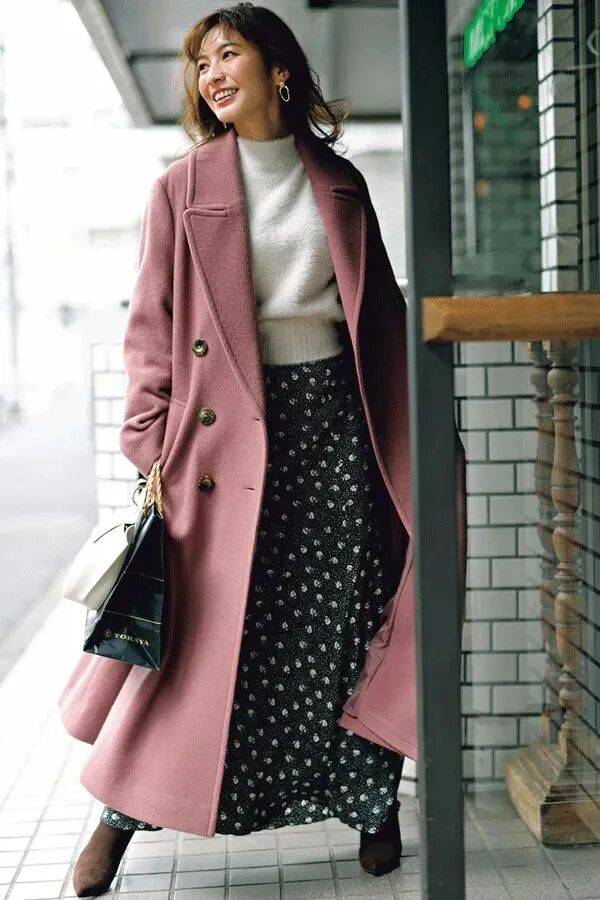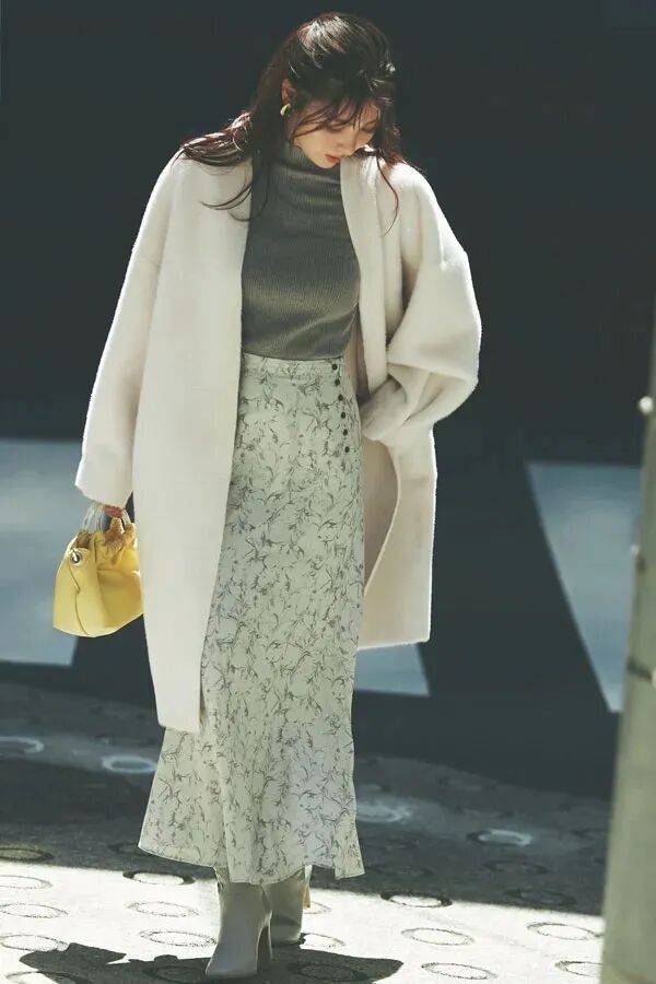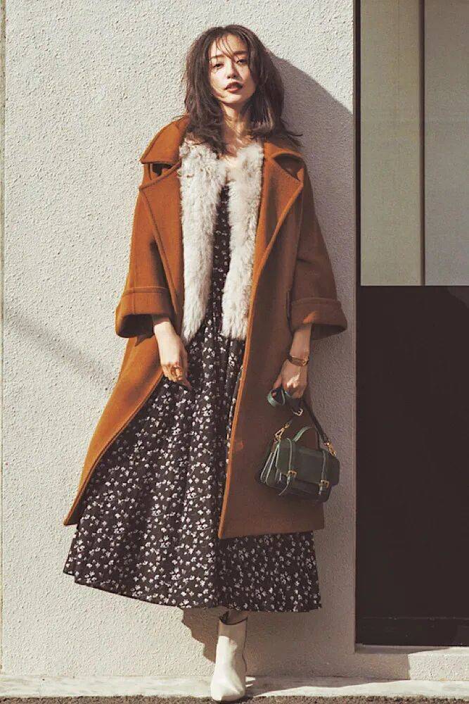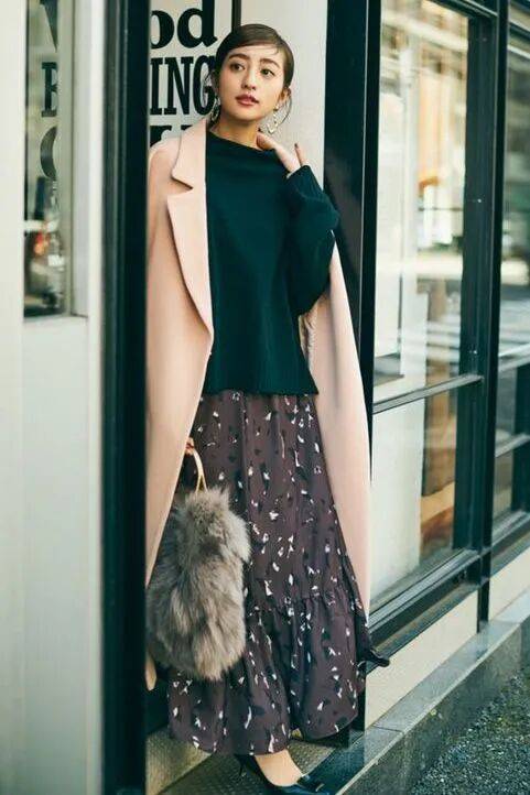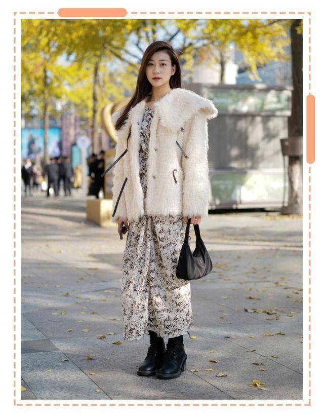 要是腿型不好,腿有点小粗的话,穿裙子是最好的掩盖,一条长裙套上身,什么粗臀和大象腿都给盖住了,自然是修饰身形的好方法。碎花裙本身视觉感有点繁杂,好在有裙子的属性在,穿上就会呈现出浪漫的视觉感。外面穿淡色的毛绒外套,在保证温暖感的同时也能让甜美度升级,不做作也很淑女。