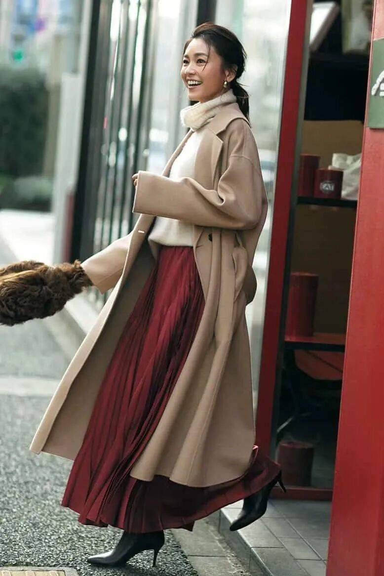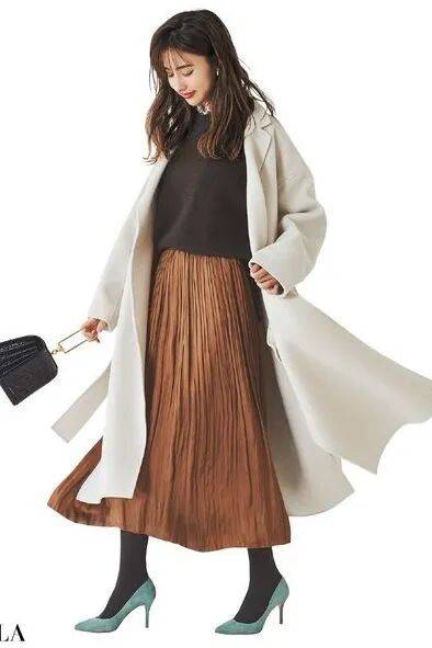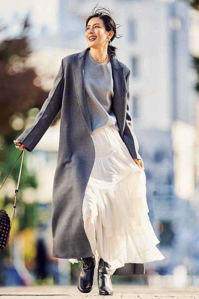 裙子裹裤子:轻纱裙+紧身裤(遮肉显瘦)、开叉裙+西装裤(刚柔并济),保暖与风格兼得。