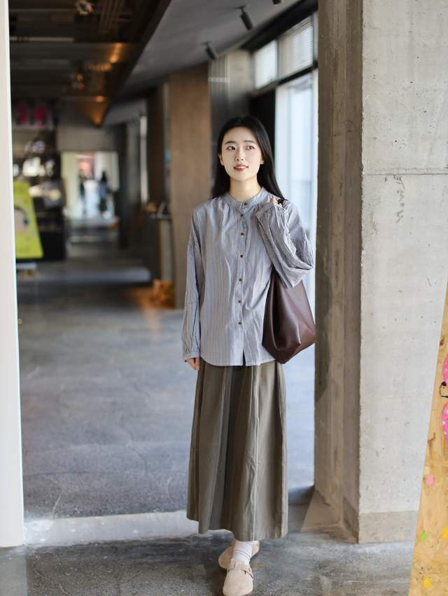 日常休闲风穿搭可选一件衬衫搭配上一条压褶伞状半身裙,甚至脚上穿的可以不是高跟鞋也不是高跟凉鞋,换成一双大地色系的勃肯鞋。这样的打扮,日常通勤、逛街约会穿搭都很上镜。