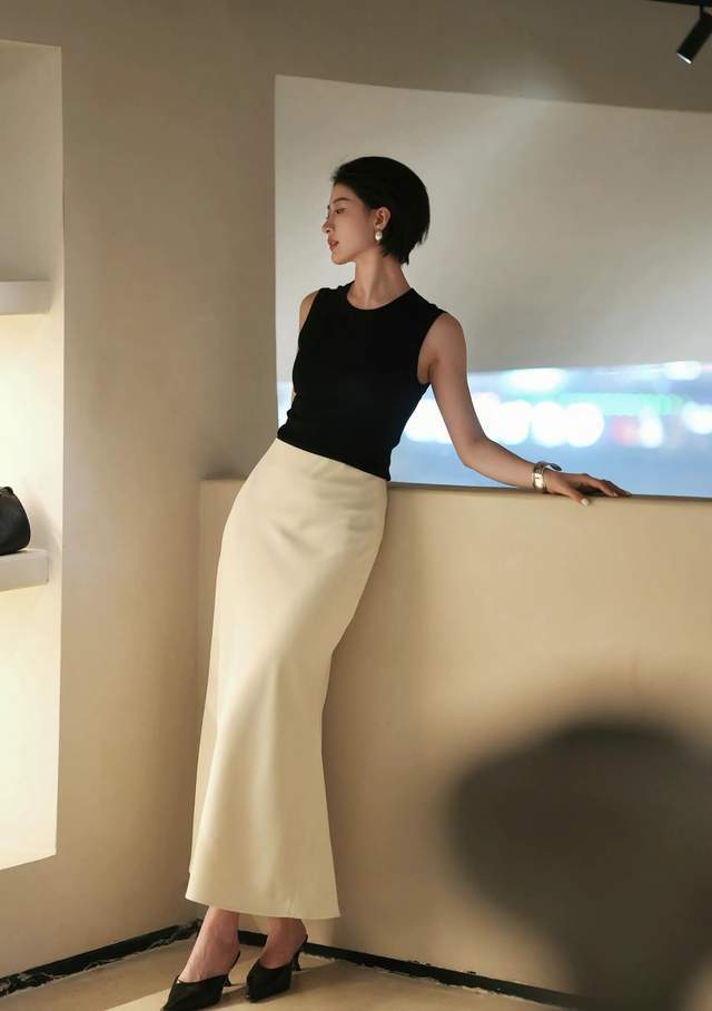 例如,上面这位时尚博主,用一件黑色针织无袖上衣搭配上白色的直筒半身裙,脚踩黑色低跟单鞋,这样的黑白组合经典耐看,照着穿让你沉稳又优雅大方,呈现出轻熟风的气质感,变得更迷人。第三章节,穿连衣裙如何配鞋子更优雅?