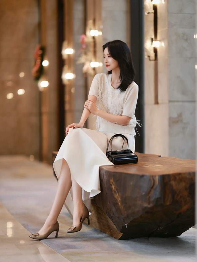 脚上可以选择一双奶白色的浅口高跟单鞋来穿搭,就能让你变得优雅有气质。不过尽量控制好鞋跟高度,小于 6cm 最佳。第四章节,如何穿裙子更显温柔?