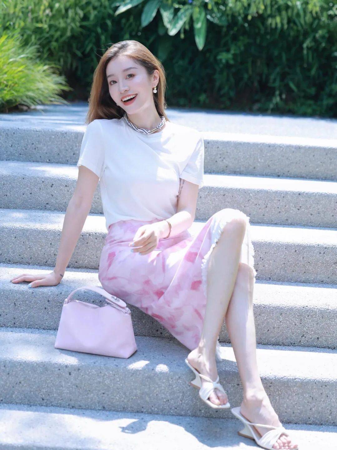 例如,上面用一件小众色系的白色针织短袖上衣搭配上白色的半身裙,脚踩一双大地色的羊皮材质高跟单鞋,这样的打扮就呈现出一种轻熟风的时尚风范,这就是小姨风穿搭,既优雅又显高级质感。