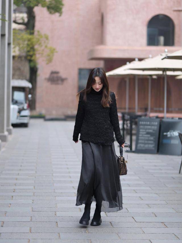 柔美与干练交融,室内单穿室外加外套。