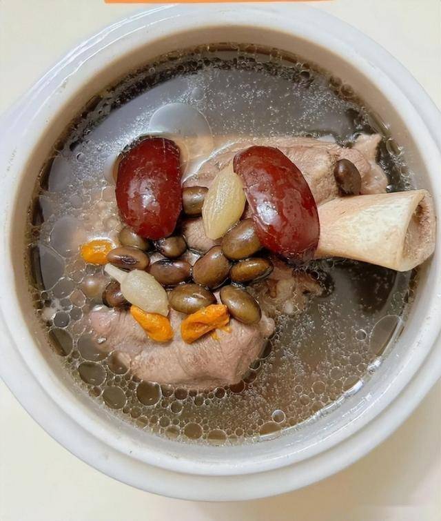 5. 40分钟后,放入泡发好的黑豆和红枣,继续小火炖煮1 - 1.5小时,让黑豆和红枣的营养充分融入汤中。