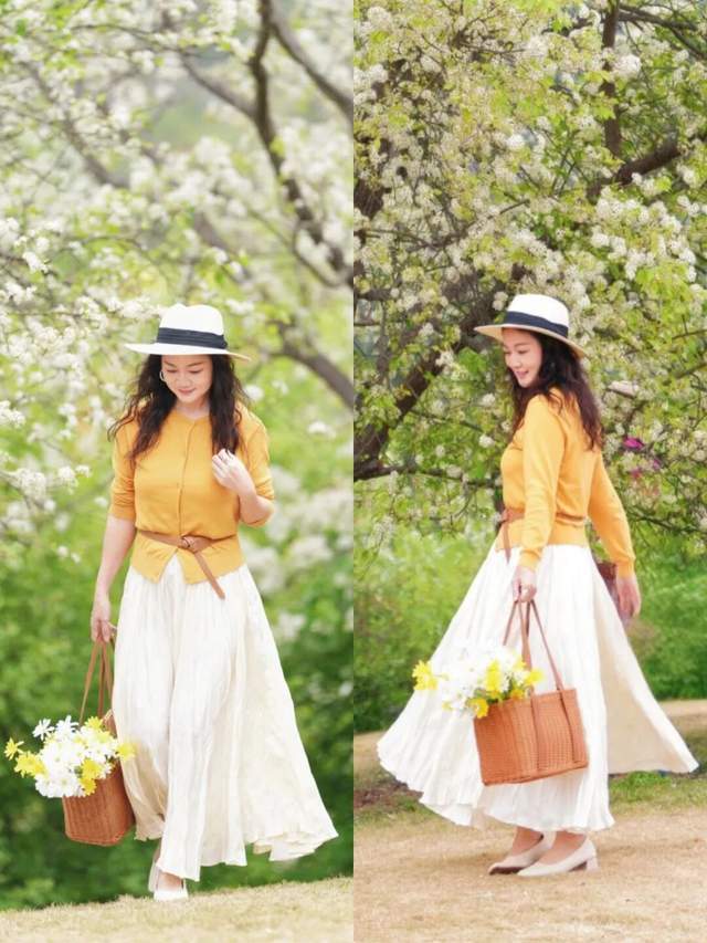 春天出游,我们都喜欢拍照,这时候可以准备一条优雅飘逸的仙女裙,也就是白色赫本裙,非常仙气,搭配任何颜色的上衣,都很好看。