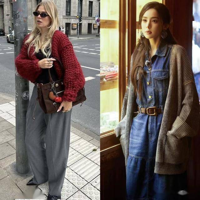 长款的奶奶衫,它更有一些慵懒的松弛感,而且显瘦的效果OK。