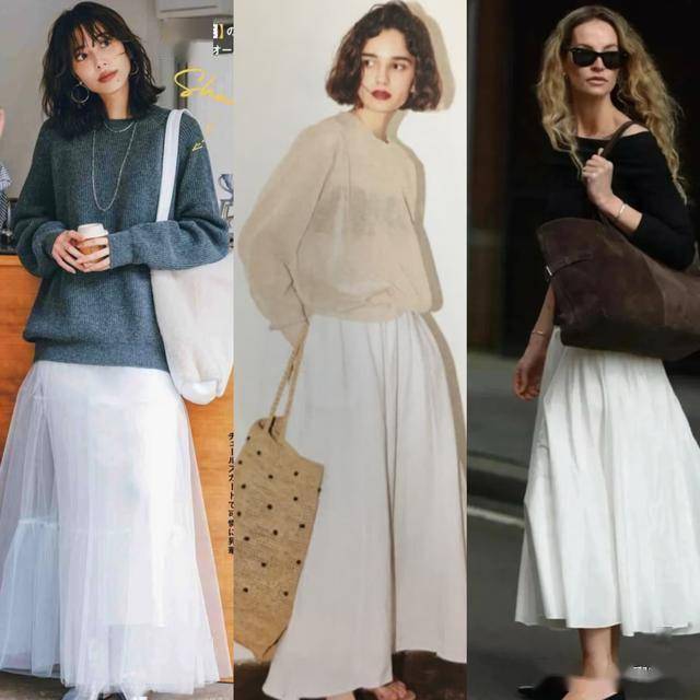 如果你有一件很普通的纯色毛衣,不妨配一条仙气飘飘的白色赫本裙,比如黑色或是灰色的毛衣,只要配上仙女裙,经典的无色系搭配会显得格外干净高级,又显得格外轻盈,带着清纯感,很出片。