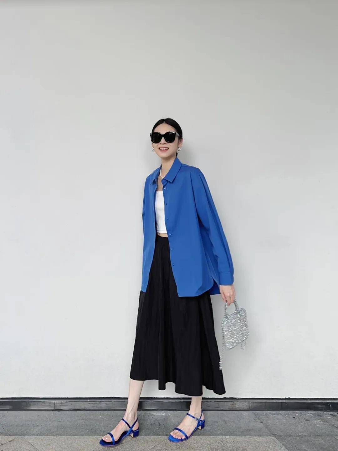 一件基础款,因为不同的搭配,拥有了无限可能。不妨拿出衣柜里的蓝色衬衫,尝试一种新的搭配方式。也许,你会发现另一个更美的自己。
