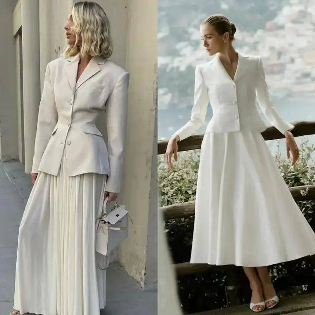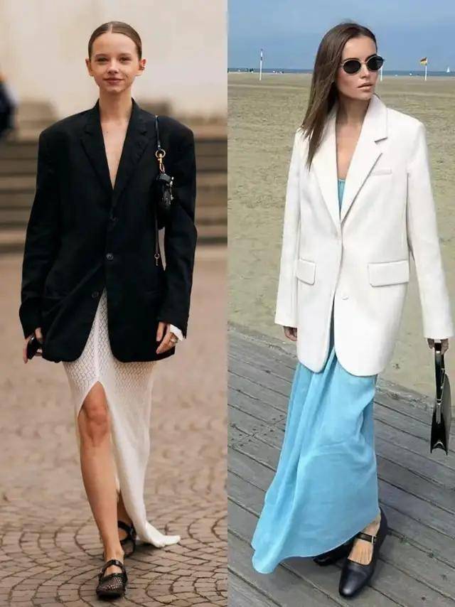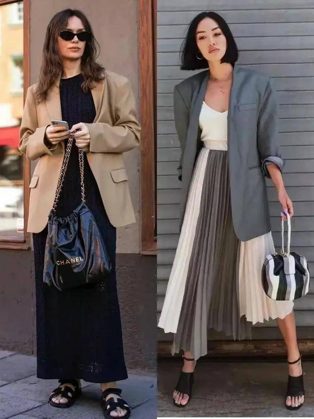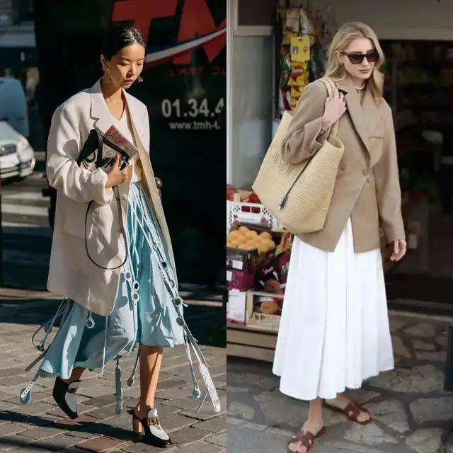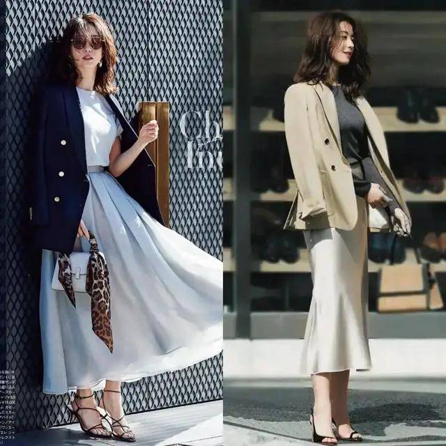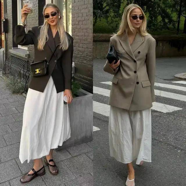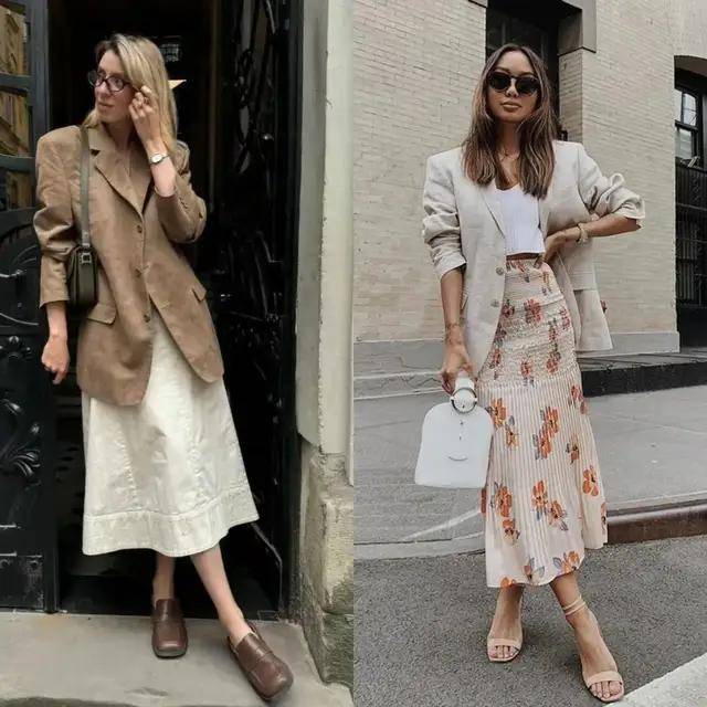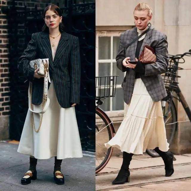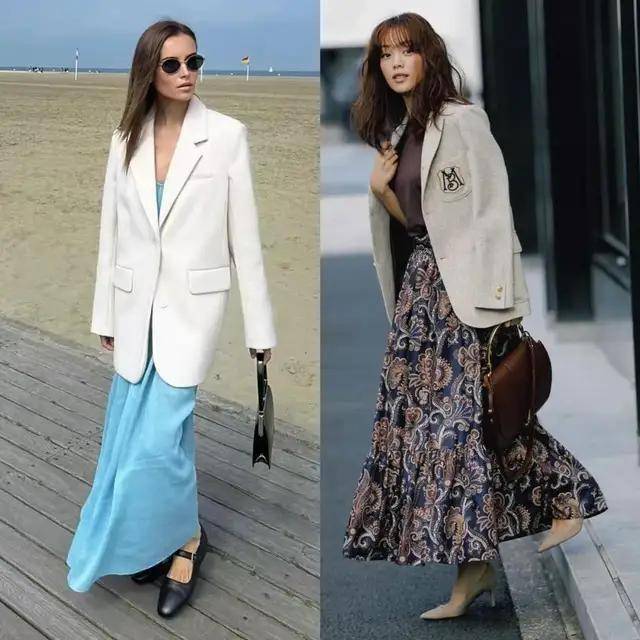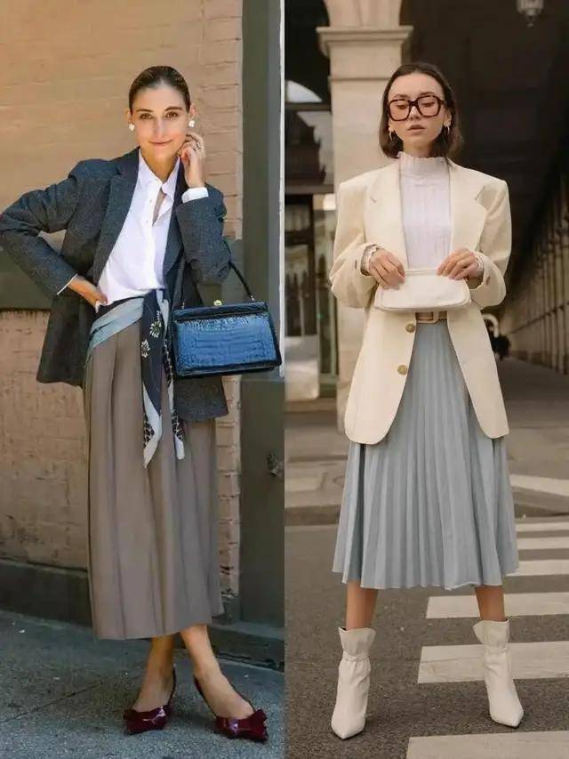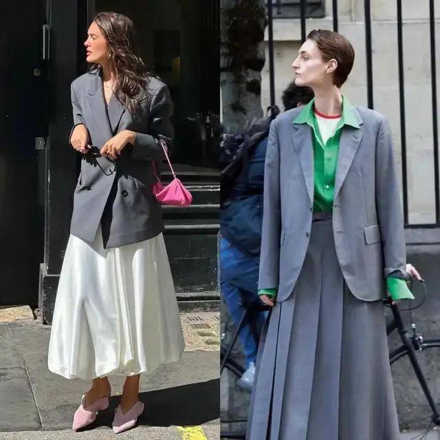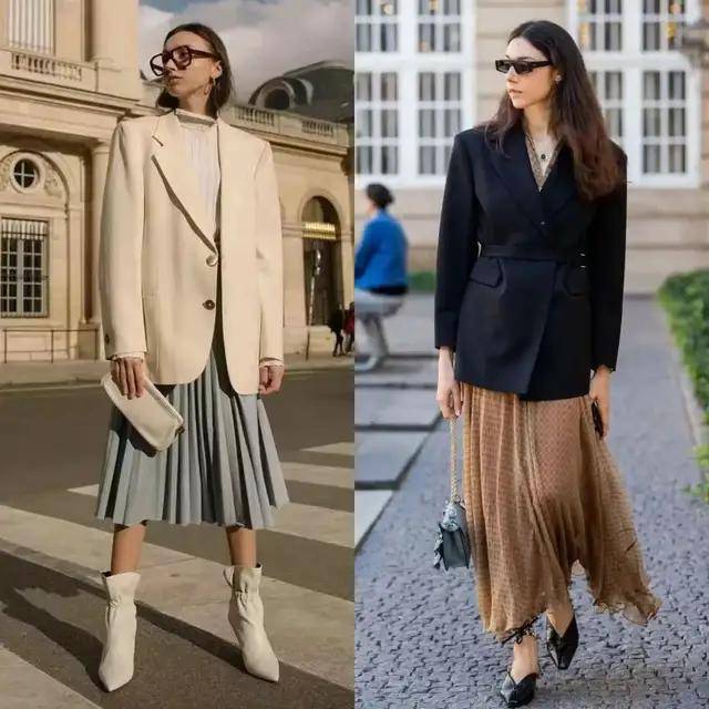 最近西装搭配半身裙再度翻红,轻松穿出藏不住的时髦感,遮肉显瘦,温柔又提气。