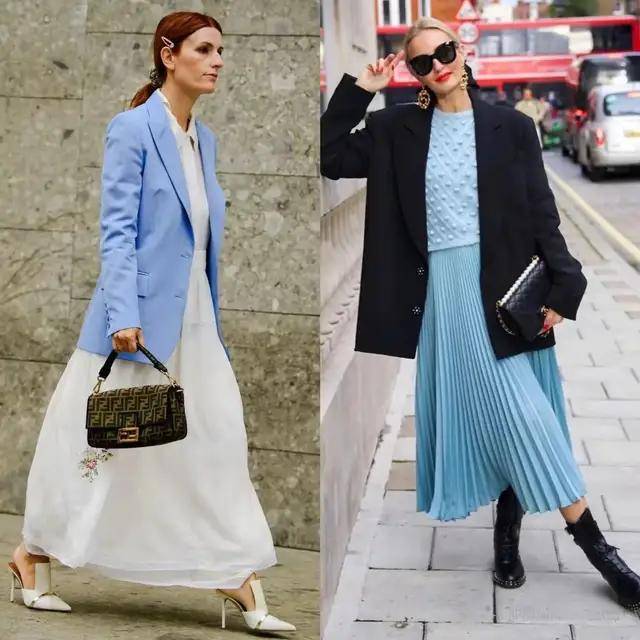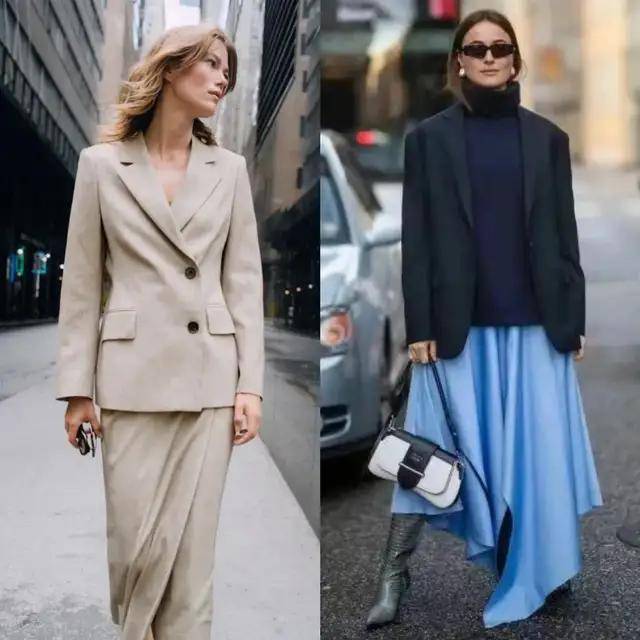最近“西服+半身裙”又火了,这么穿想不时髦都难