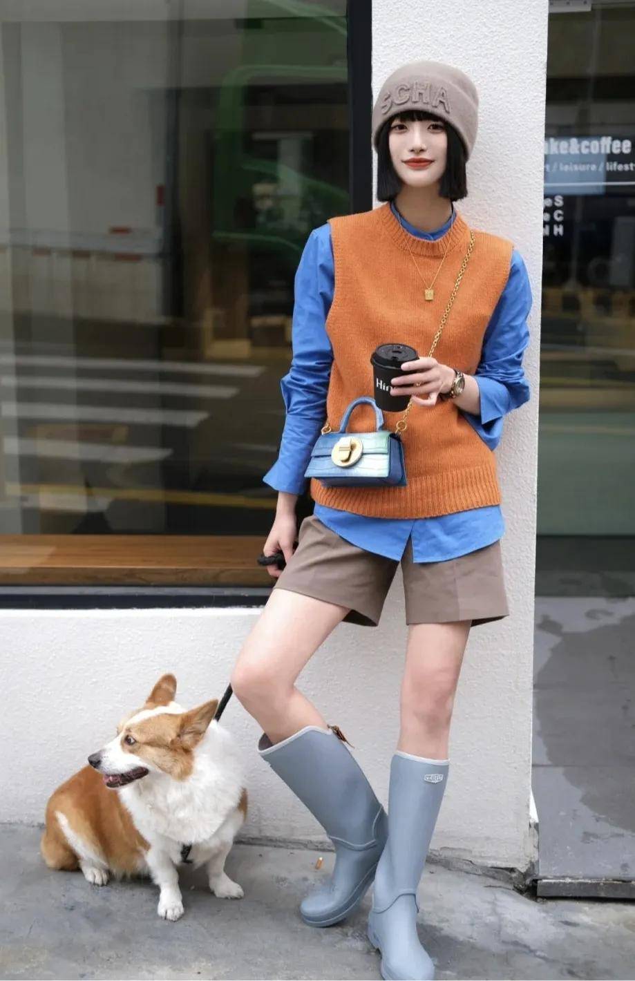 选择橙色或灰色的背心,与蓝色形成对比,下装配一条牛仔阔腿裤和一双小白鞋,或者搭配一条棕色短裤和长筒靴,既显青春活力,又穿出了与众不同,回头率很高。