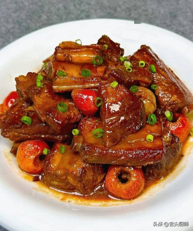 一、山楂烧排骨:酸甜解腻,肉质酥烂