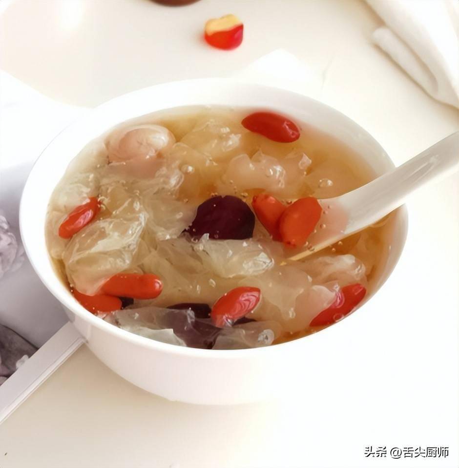 中医解析:桂圆补心脾、益气血,适合失眠、健忘者;银耳滋阴润肺,与红枣、枸杞搭配,可改善面色苍白、皮肤干燥。