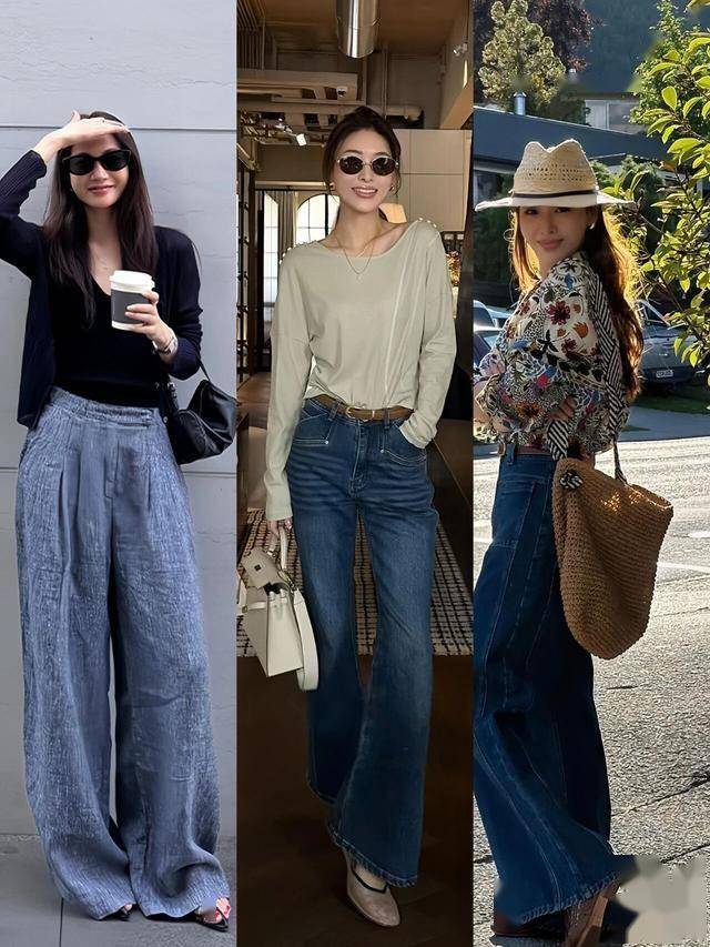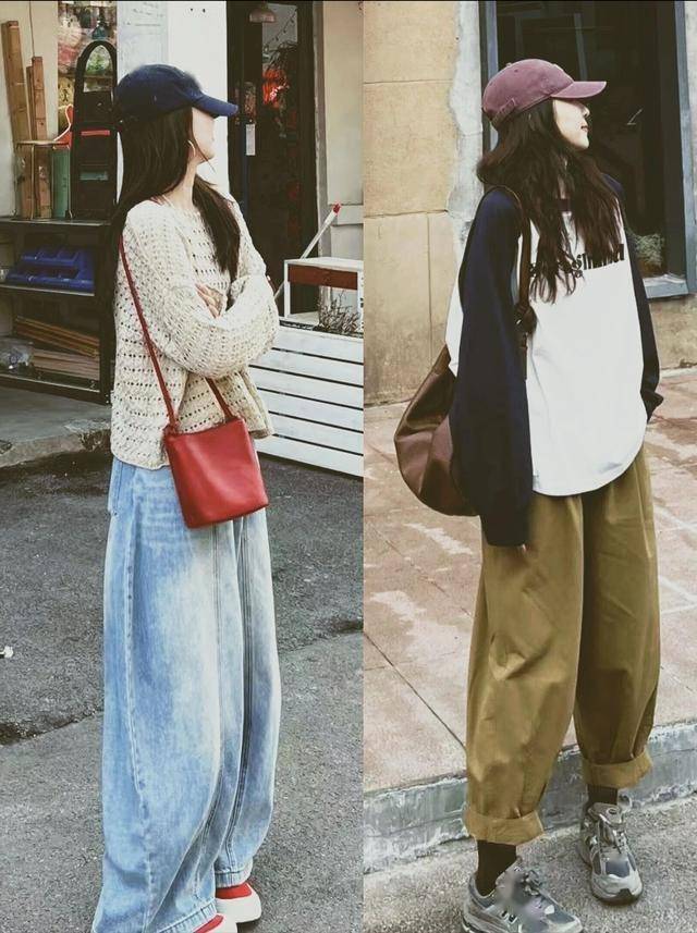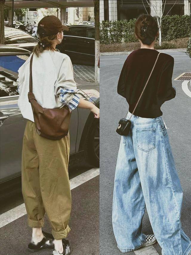 卫衣+阔腿裤:短款卫衣配高腰牛仔阔腿裤,上短下长修饰比例(参考卫衣黄金公式)。