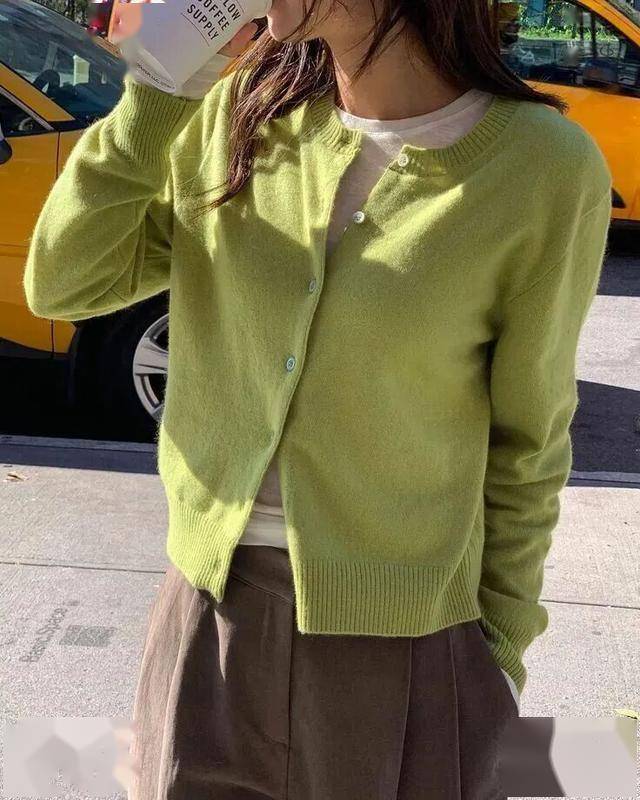 高饱和色单品:橘色针织衫或松石绿配饰,作为局部亮点点缀(如搭配中性色外套)。