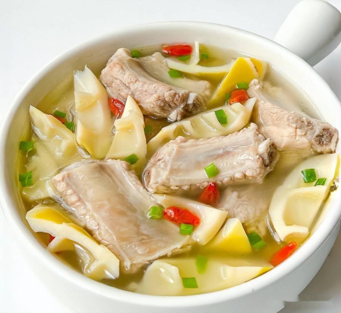 7. 放入焯好水的春笋块和枸杞,继续炖煮30 - 40分钟,加入适量盐调味即可。