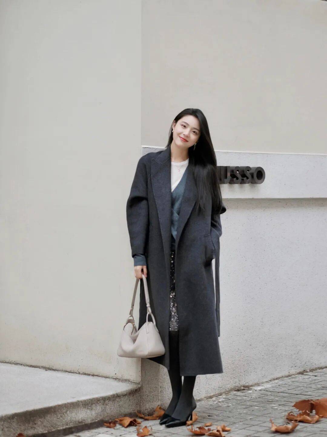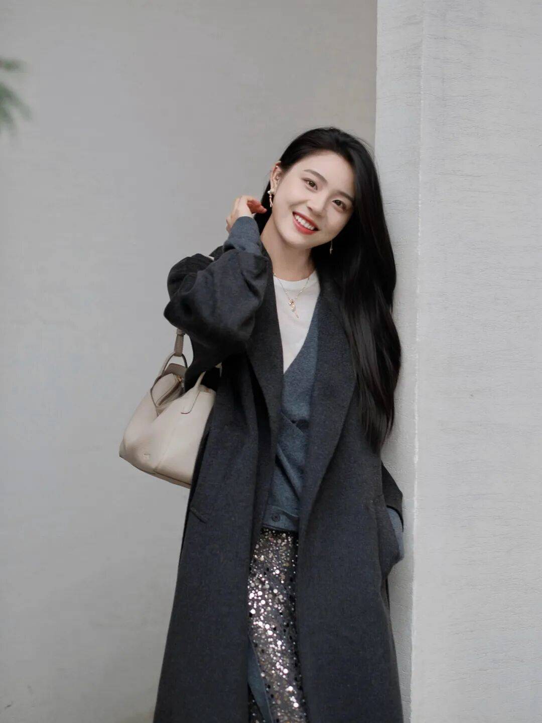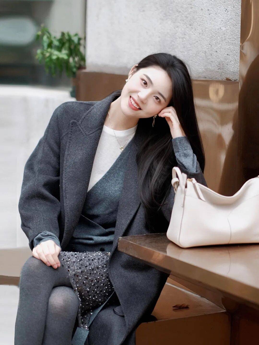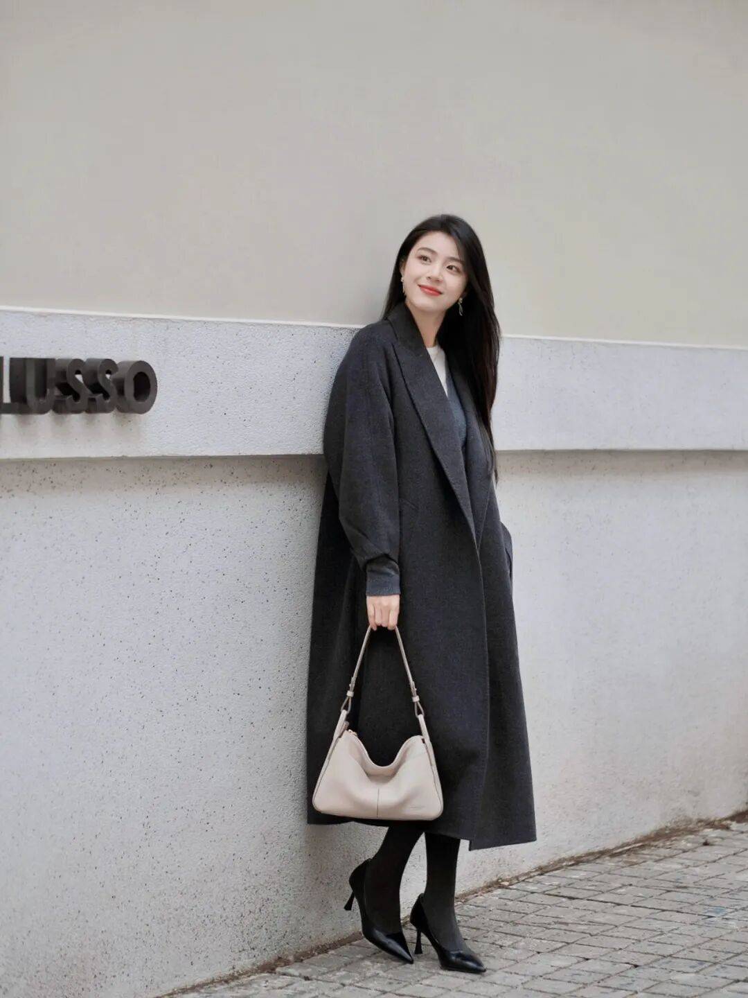 穿大衣拍照侧站时把包挎在身上,身体向前一点,头轻轻回过来对着镜头笑,大衣的背部线条和侧颜一起出现,画面会很耐看,也很出片温柔有气质。