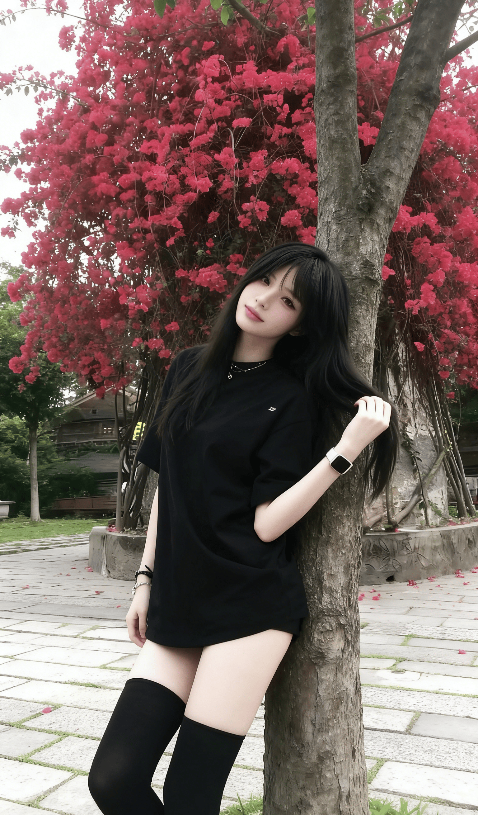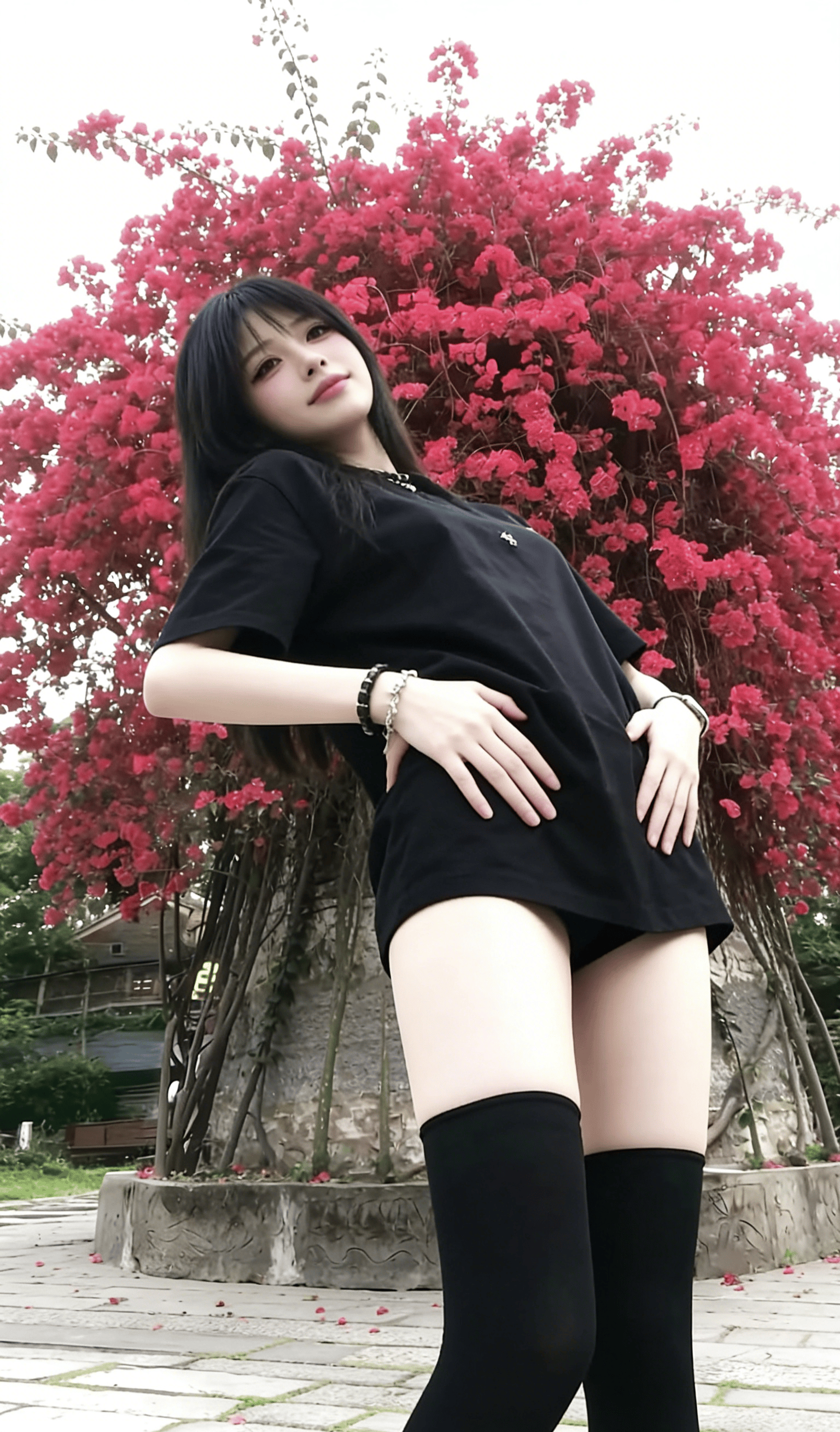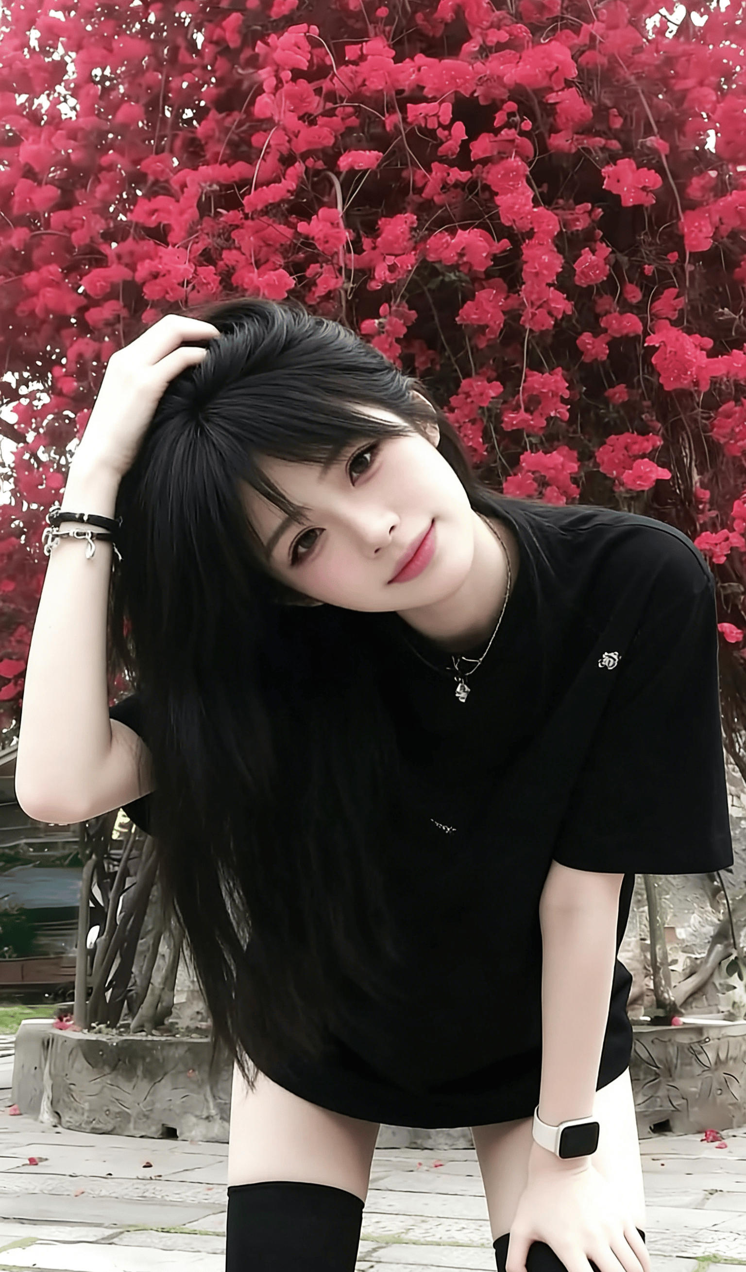 身后开得热烈的三角梅红得张扬,衬着一身黑的她,春日的柔与冷调的酷完美融合。原来最能打动人的性感,从来都是这份甜而不腻、欲而不俗的松弛感,只一眼,就轻轻松松撞进了所有人的心巴。