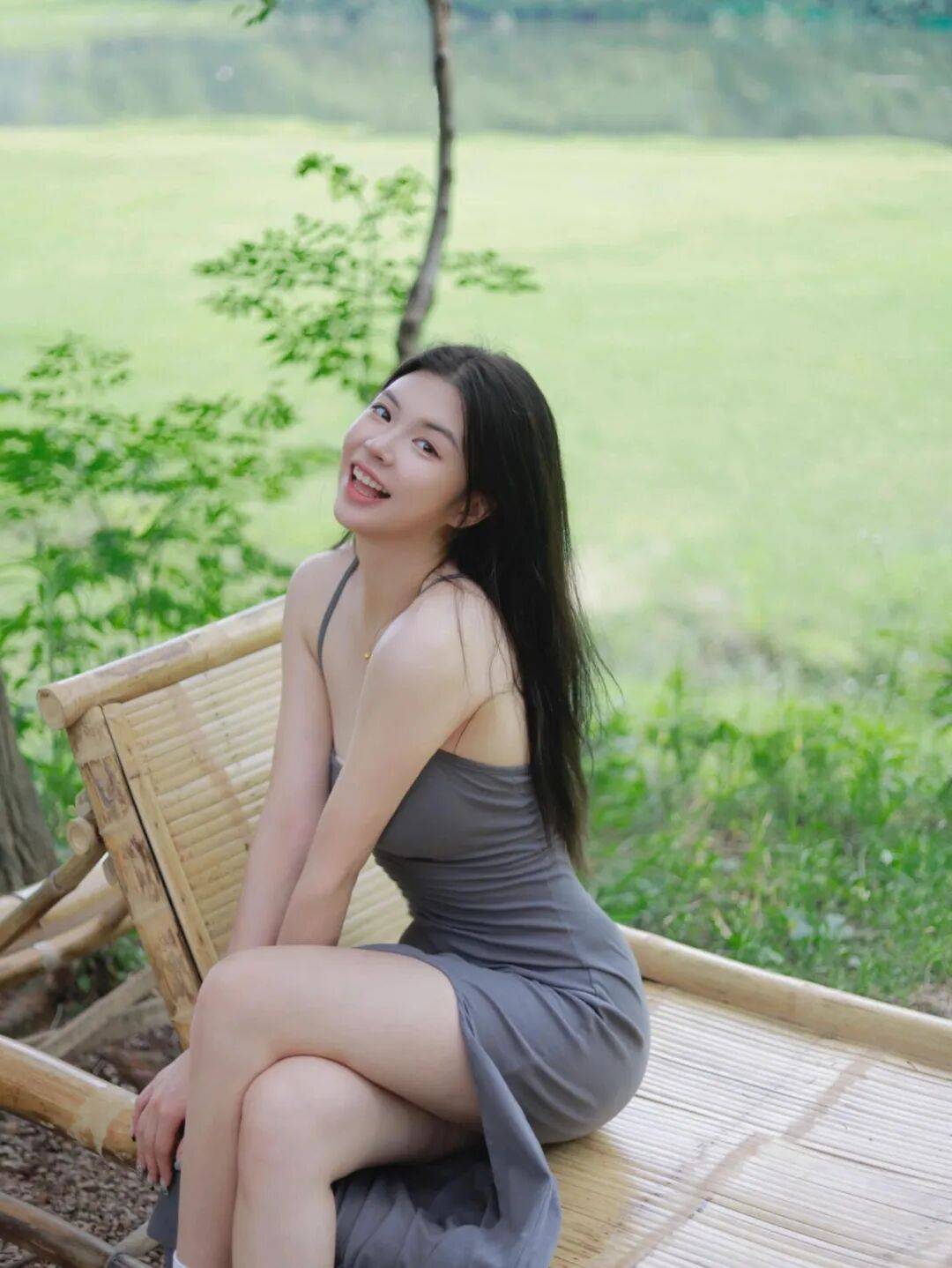 穿长裙坐下来拍也很好看。侧着坐下,把双腿自然交叠,会让腿看起来更修长。抬头对着镜头笑一笑,整个人会显得很松弛,不做作,很适合日常随拍。
