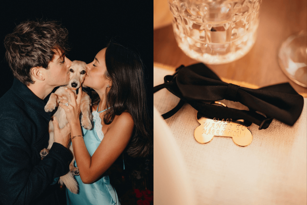 不仅有音乐,两人的生活里还有一位“顶流”——爱犬Leo。两人去年订婚,就是勒克莱尔将刻有“你愿意嫁给我吗”的字牌戴在Leo的项圈上,最后Alexandra以同样的方式接受求婚,也是非常有爱。