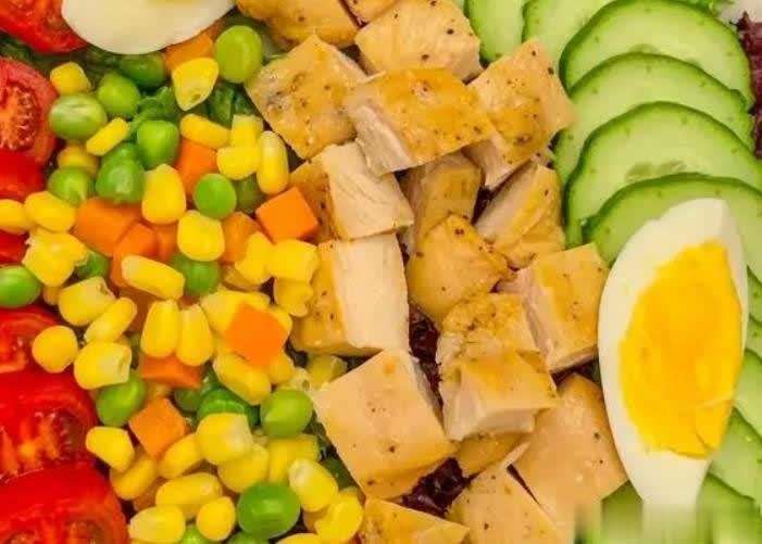 17. **鸡肉蔬菜沙拉** 风味特色:清爽可口,营养丰富。 食材用量:鸡胸肉200克,生菜适量,黄瓜1根,小番茄适量,橄榄油、柠檬汁、盐适量。 烹饪步骤:鸡胸肉煮熟晾凉撕丝,生菜撕块,黄瓜切片,小番茄对半切。将食材放入大碗,加入橄榄油、柠檬汁、盐拌匀即可。