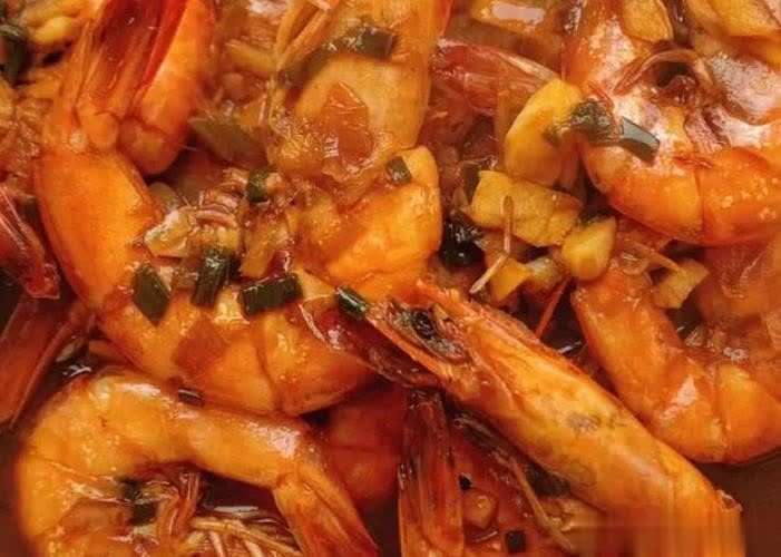 18. **红烧大虾** 风味特色:色泽红亮,味道鲜美。 食材用量:大虾500克,姜蒜、生抽、老抽、糖、盐适量。 烹饪步骤:大虾洗净去虾须和虾线,锅中放油爆香姜蒜,翻炒大虾至变色,加入调料和水,大火烧开转小火至汤汁浓稠,加盐调味即可。