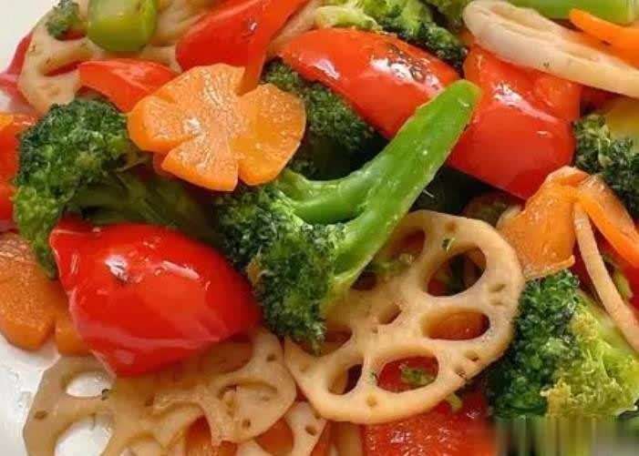 11. **清炒时蔬** 风味特色:色彩鲜艳,清爽可口。 食材用量:莲藕、胡萝卜、菠菜、小白菜等时令蔬菜适量,蒜末适量,盐适量,油适量。 烹饪步骤:蔬菜洗净切块,锅中放油爆香蒜末,加入蔬菜快速翻炒至断生,加盐调味即可。