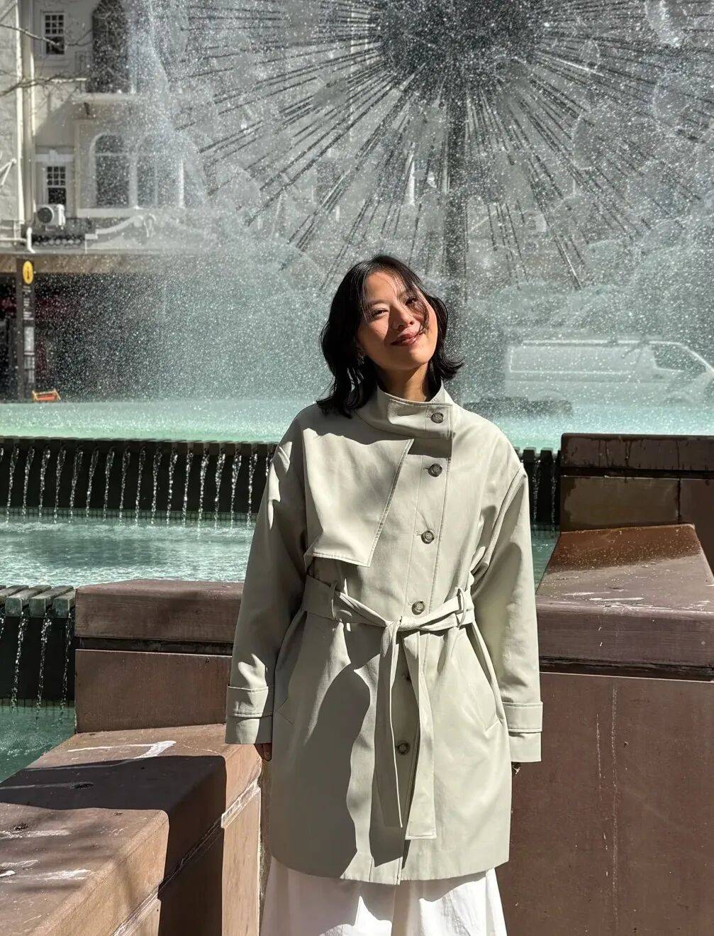 牛仔外套是春天的“常青树”,与白色阔腿裤的组合充满休闲活力。选简约合身的牛仔外套,颜色选浅蓝或经典蓝,内搭白色或条纹T恤,将外套下摆微微卷起,露出一点内搭,增加层次感。白色阔腿裤的长度刚好到脚踝,裤脚微微垂坠,走路时带点飘逸感,适合春游、逛街或日常通勤。脚上踩一双老爹鞋或帆布鞋,轻松又减龄。