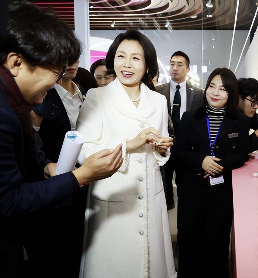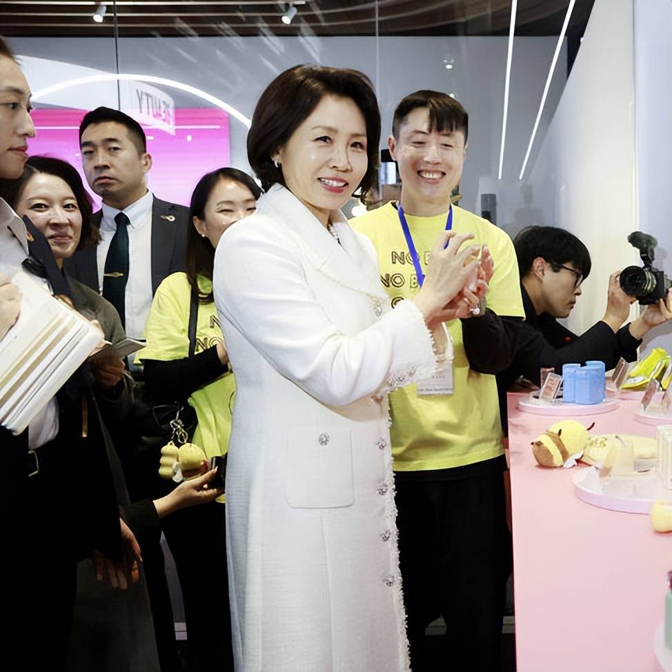 金惠景的领导力体现在细微之处。当记者的摄像设备不慎撞到她的头部时,她仅轻揉被撞处,继续微笑挥手,全程淡定。这些下意识的举动,展现了她的个人修养和情绪稳定性。