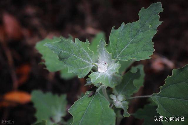 叶子背面有一层灰白色的粉末,摸起来糙糙的,叶子是菱形,边缘带锯齿,田边、荒地到处都是。