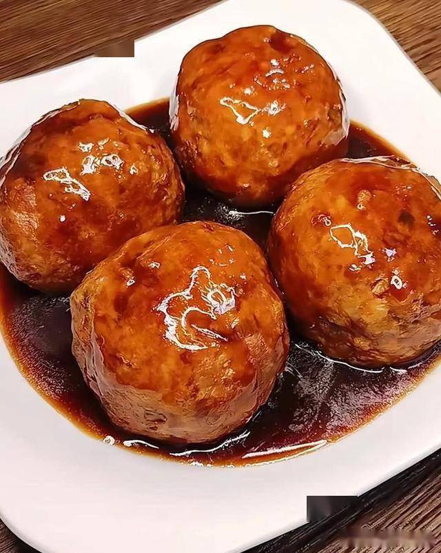 7. 待汤汁浓稠时,将丸子捞出装盘,把汤汁浇在丸子上即可。