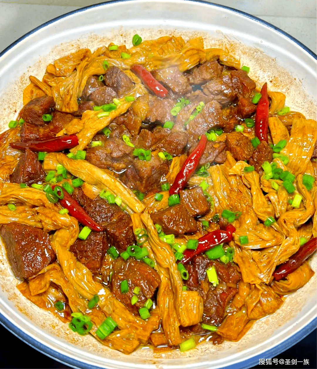 烧一点热油浇在葱丝上,“滋啦”一声,香味就出来了。