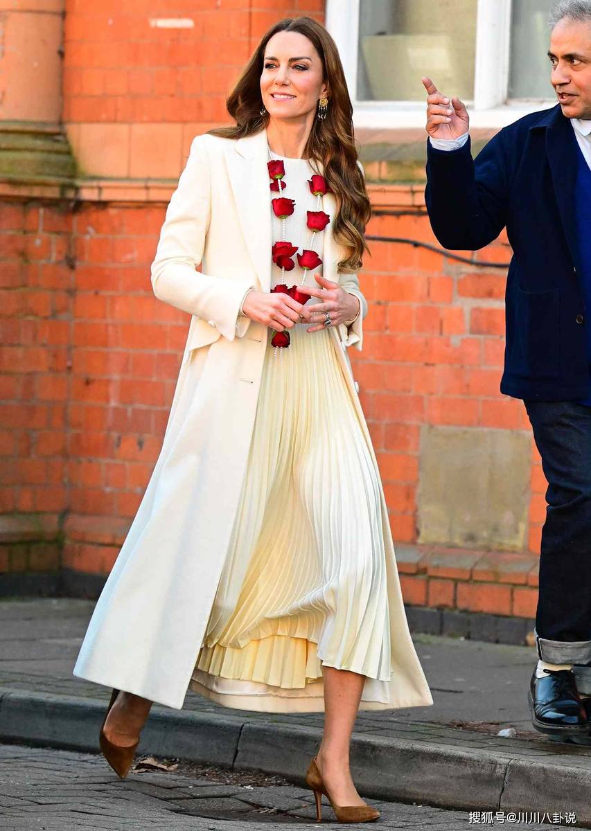 3月5日,凯特王妃无预告惊喜亮相莱斯特,和南亚裔民众一起玩洒红节庆祝春天。她一身Chris Kerr象牙白大衣搭拉夫劳伦百褶裙,佩戴sezane流苏耳环,清爽又气质。凯特王妃一直以来都是王室时尚的代表人物,她的每一次公开亮相都展现出优雅大方的形象。此次在洒红节上的造型,既符合节日的欢快氛围,又不失王室的庄重与优雅。象牙白大衣显得纯洁高贵,拉夫劳伦百褶裙增添了一份灵动与活泼,流苏耳环则为整体造型增添了一丝时尚感。现场她收到火红玫瑰“项链”,花美人更美,和前两年相比精气神爽利多了,展现出真正的“英伦玫瑰”风采。