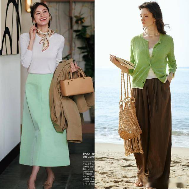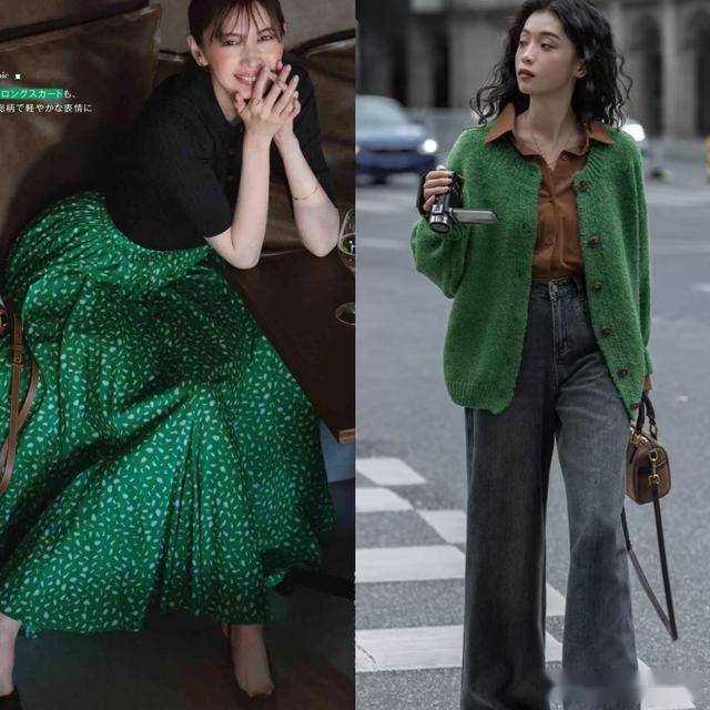 或选择绿色配饰,如包包、丝巾、鞋子,小面积提亮也足够吸睛。