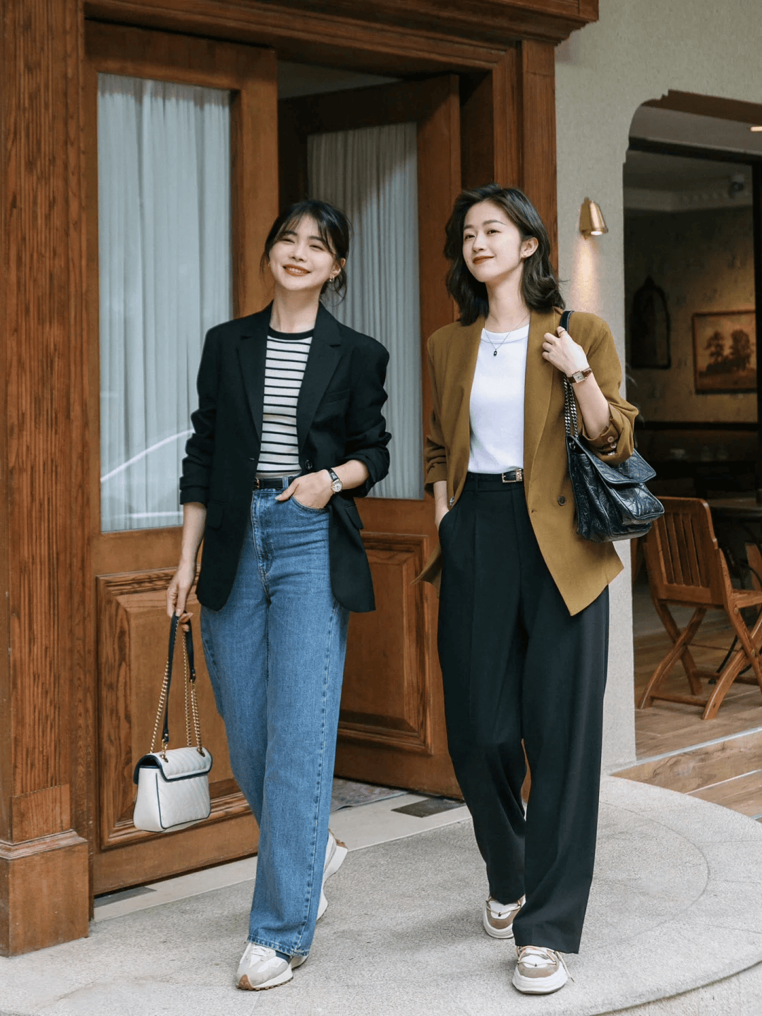 基础组合:西装+高腰裤(职场)→ 脱外套+换配饰(约会)。