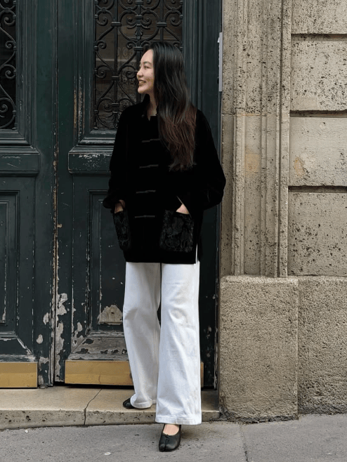 搭配牛仔裤休闲,轻松惬意享春光。