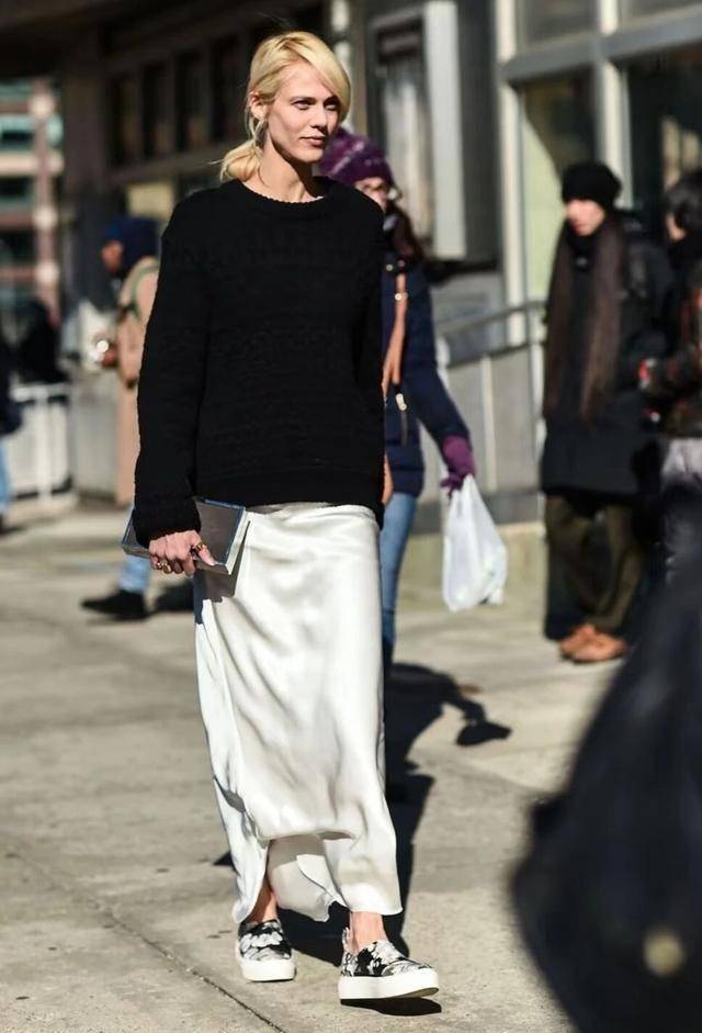 此类穿搭以基础款为核心,通过材质碰撞(如针织与缎面)、色彩克制与适度露肤,实现“毫不费力的时髦”,尤其适合30+职场女性
