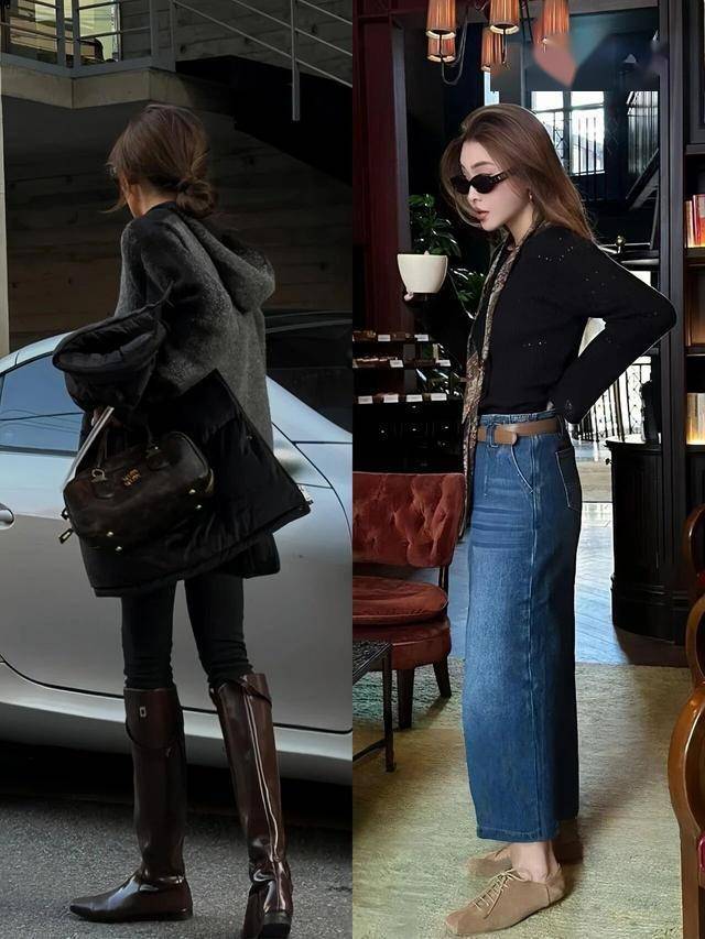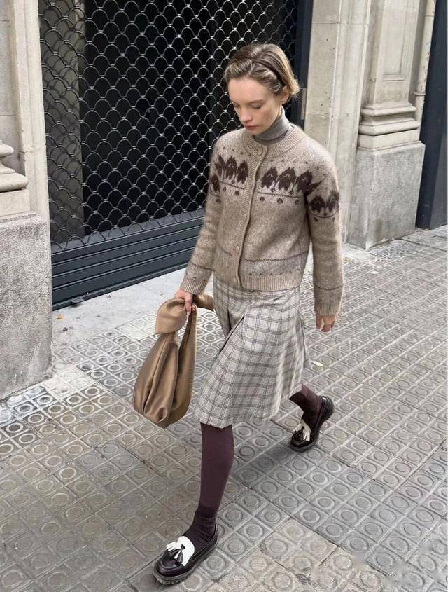乐福鞋、粗跟短靴替代传统高跟鞋,舒适不累脚;腋下包或编织手拎包强化干练感。