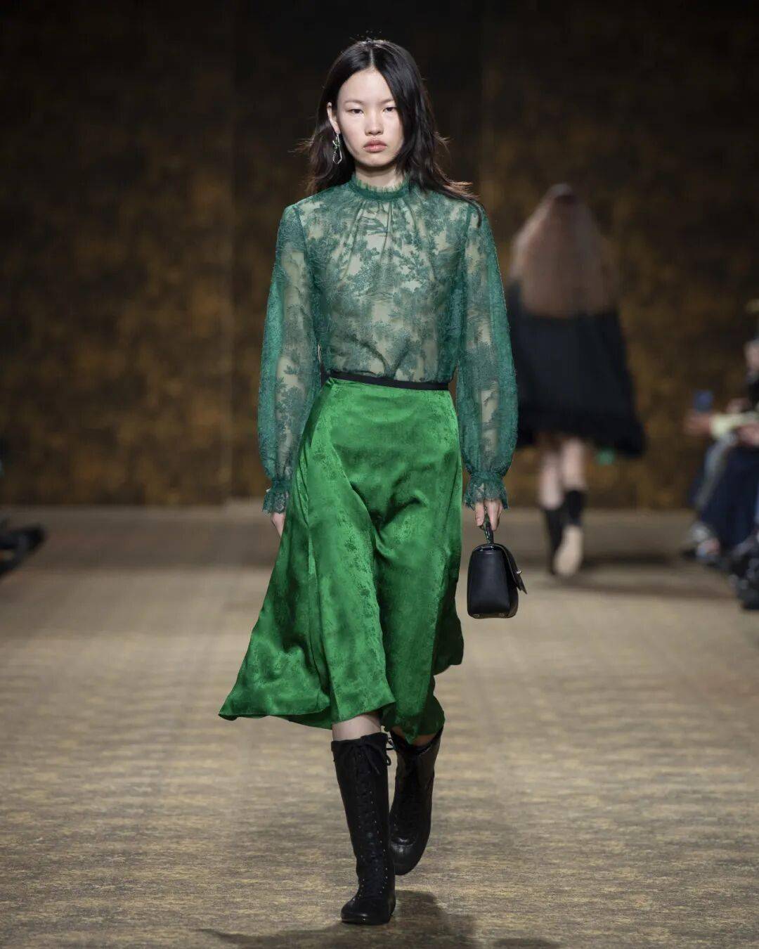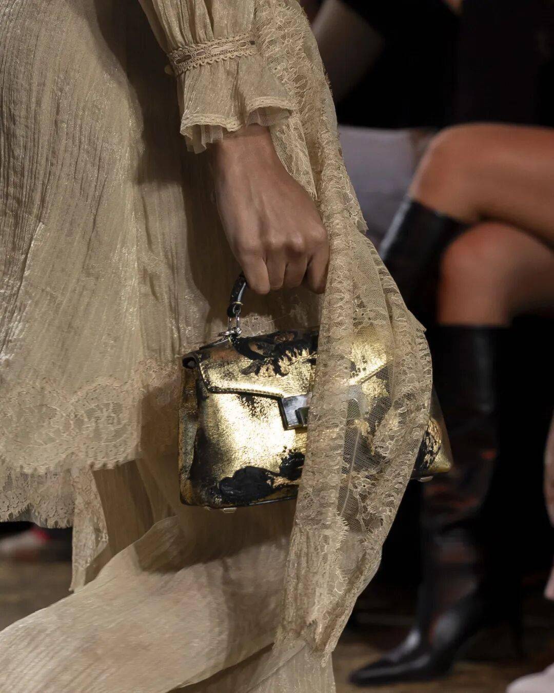 香奈儿的矛盾之美在于其自由选择的权利。无论是实用的斜纹软呢套装,还是富有幻想的轻盈飘逸的裙装,都为穿着者提供了成为自己、成为想成为的人的自由。模特佩戴的首饰和手袋款式,以及仿佛第二层肌肤的拼接装饰长靴,都体现了这一季的梦幻与实用主义的浪漫。