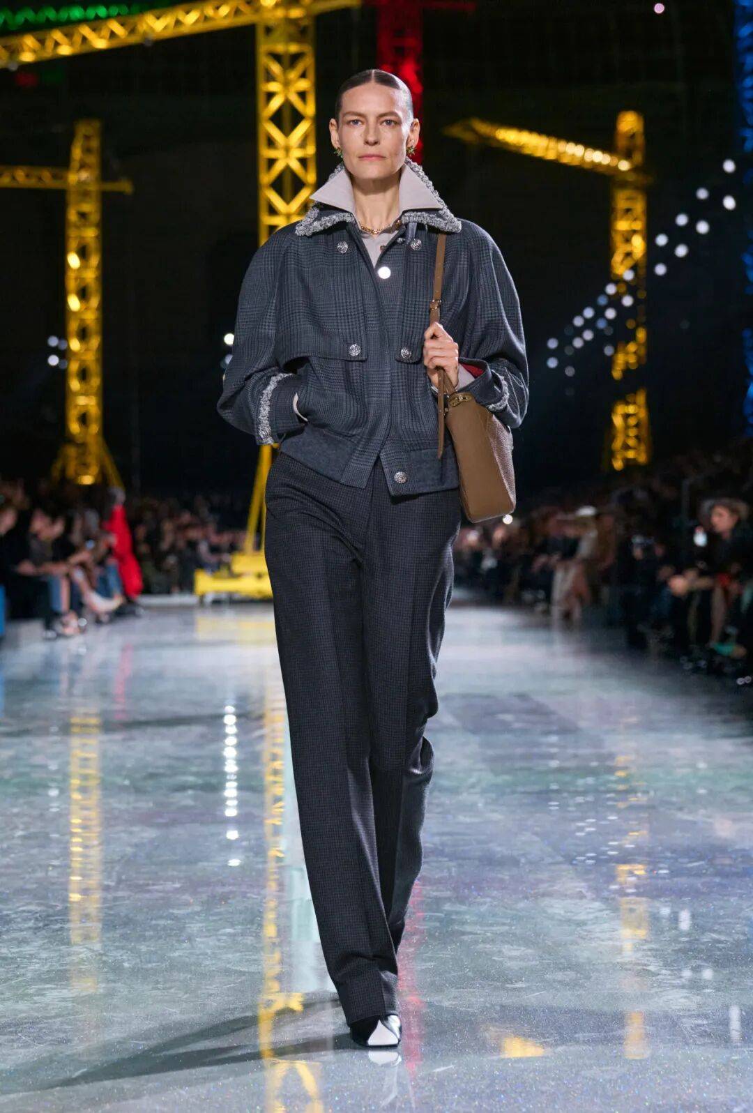 香奈儿创意总监Matthieu Blazy再次以想象构建了一个意境世界。巴黎大皇宫被改造成了一个充满巨型吊臂和交错灯光的世界,仿佛邀请观众进入一个持续“构建中”的香奈儿宇宙。全新2026秋冬系列以斜纹软呢、蝴蝶结和折叠尺等元素,铺陈出品牌经典的气质。