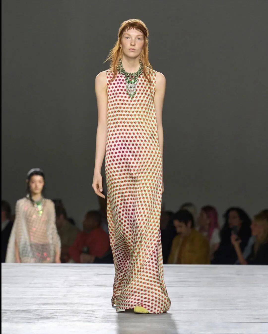 发布会谢幕之际,秀场里响起Lady Gaga的著名舞曲作品《Just Dance》(混音版本),模特仿佛开启夜间的“派对舞动模式”,也成为这场视觉戏剧的点睛之笔。