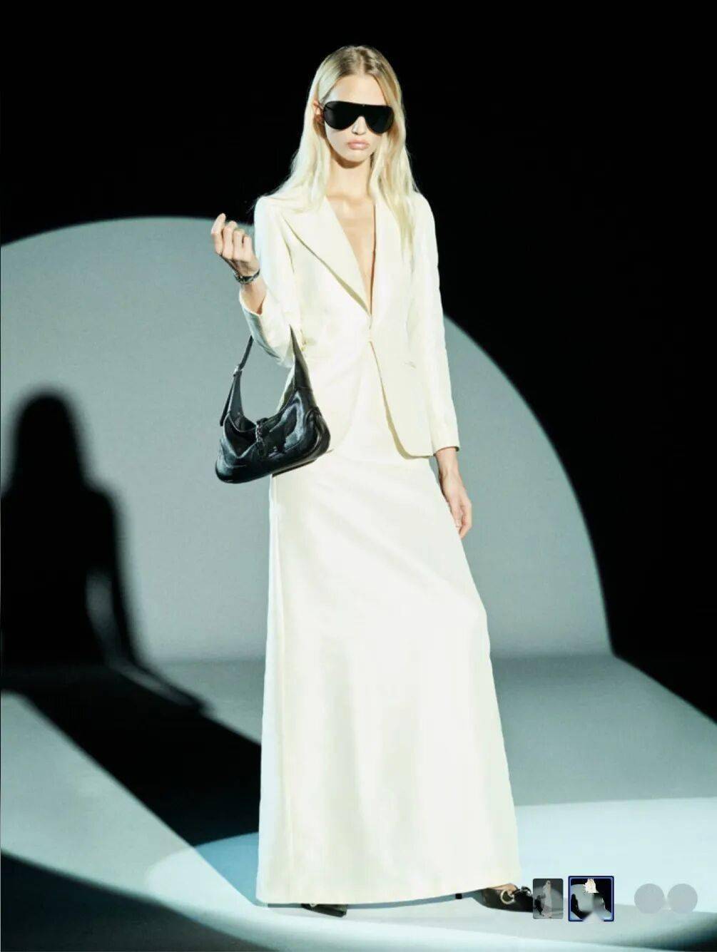 珍珠白西装与长裙相携,气质从俏丽转向从容,是不屑取悦的笃定。