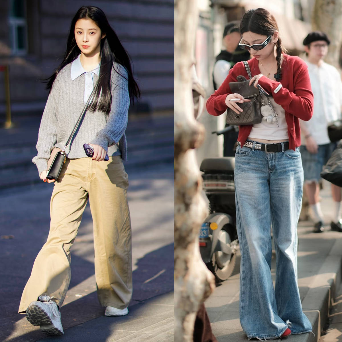 牛仔喇叭裤:“上窄下宽”版型优化腿型,齐踝长度搭配短风衣,飒爽又显高;