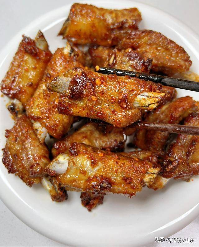 7. 排骨表面干爽微焦,用手撕着吃,肉香混着花椒麻香,欲罢不能。