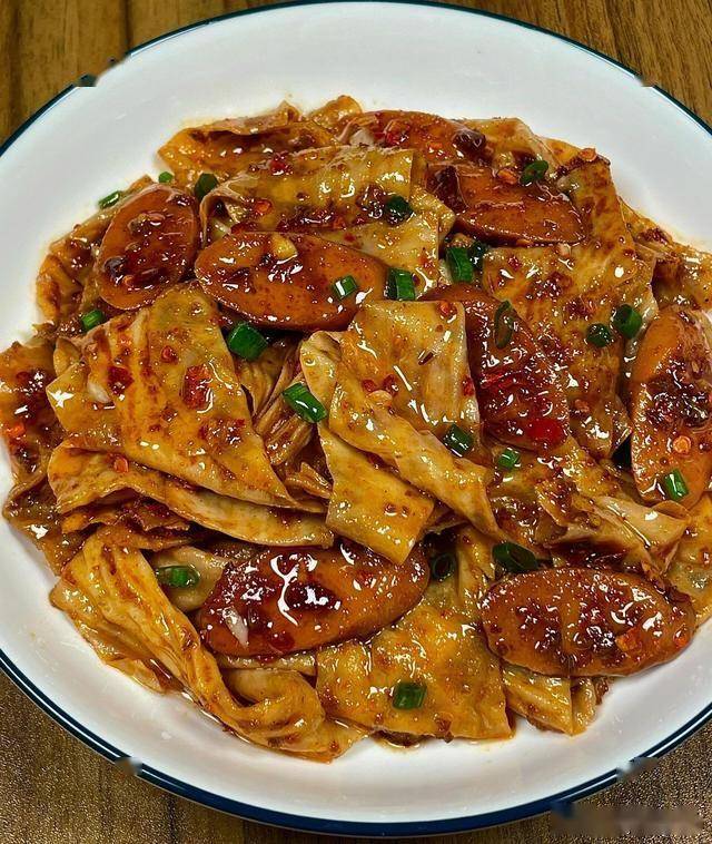 6. 炒到所有食材都熟透入味,撒点葱花,出锅装盘,简单快手,天天吃都不腻。