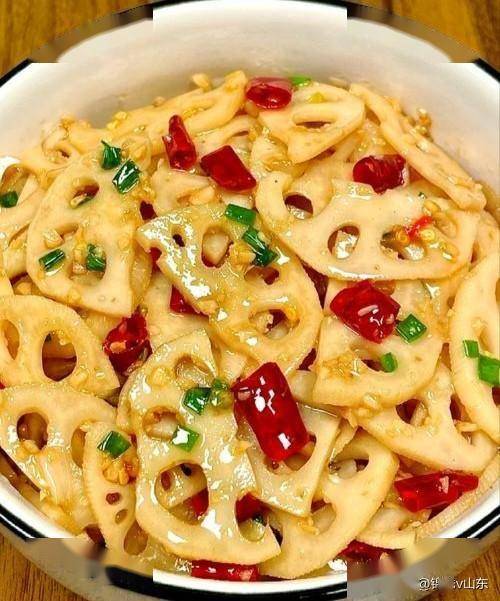 先把锅烧热再倒油,等油变热了,就放进蒜末、花椒和干辣椒炒出香味,随后把焯过的藕片倒进去,开大火快速翻炒。