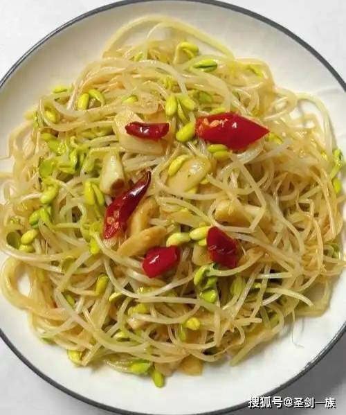 食材:黄豆芽500克、干辣椒3个、蒜3瓣、葱、盐、生抽少许、食用油
