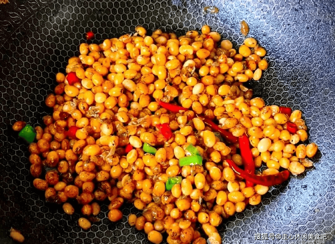 具体做法:黄豆洗净晾干,热锅凉油,小火翻炒至表皮开裂、发出“噼啪”声,撒少许盐调味即可。炒熟的黄豆香脆可口,既是下酒小菜,也寓意把霉运都“炒”走。